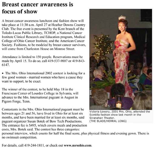 Entry Info History Prize Info Director Mrs. Ohio Photos Past Winners Pageant Production Newsletter